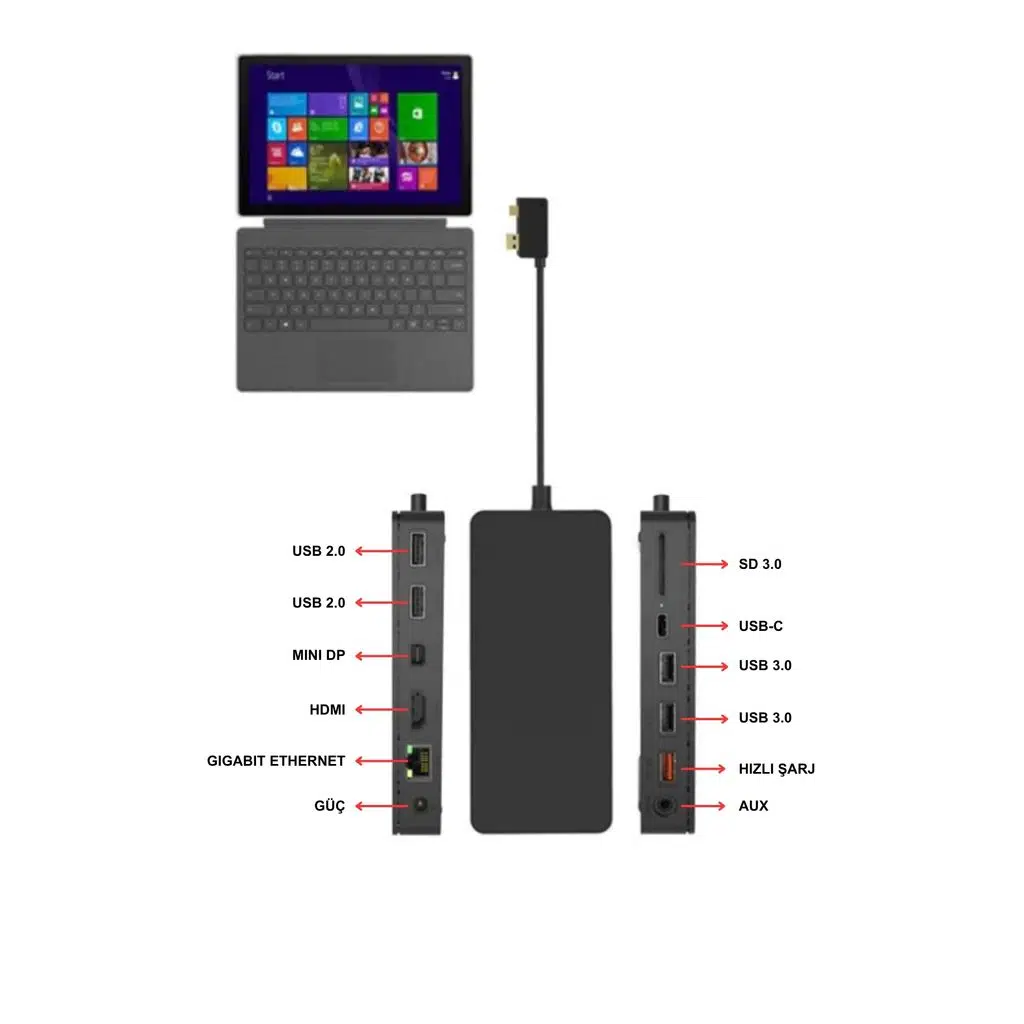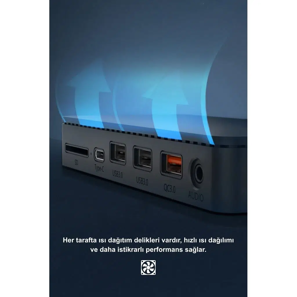 Arayüz: RJ45/Mini DP/HDMI/USB3.0/USB2.0/SD3.0/3.5 Ses/Type-C/QC3.0/DC5.5 (güç kaynağı)