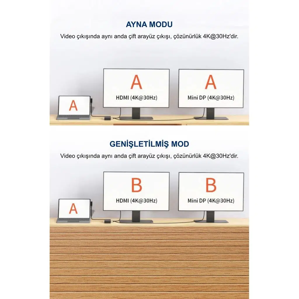 Ayna modu, video çıkışı sırasında çift arayüz aynı anda çıkış verir, çözünürlük 4K@30Hz'dir.