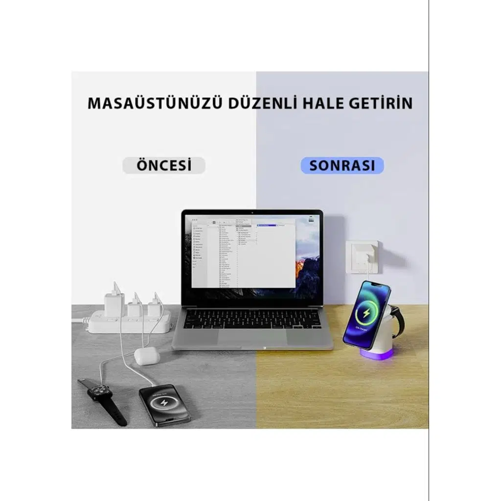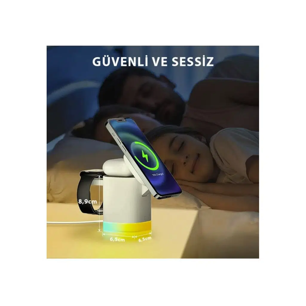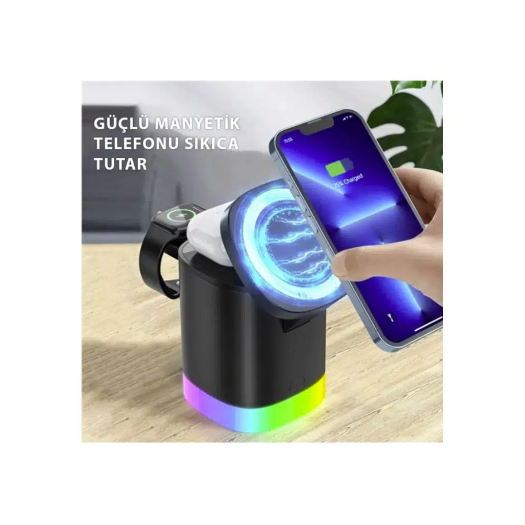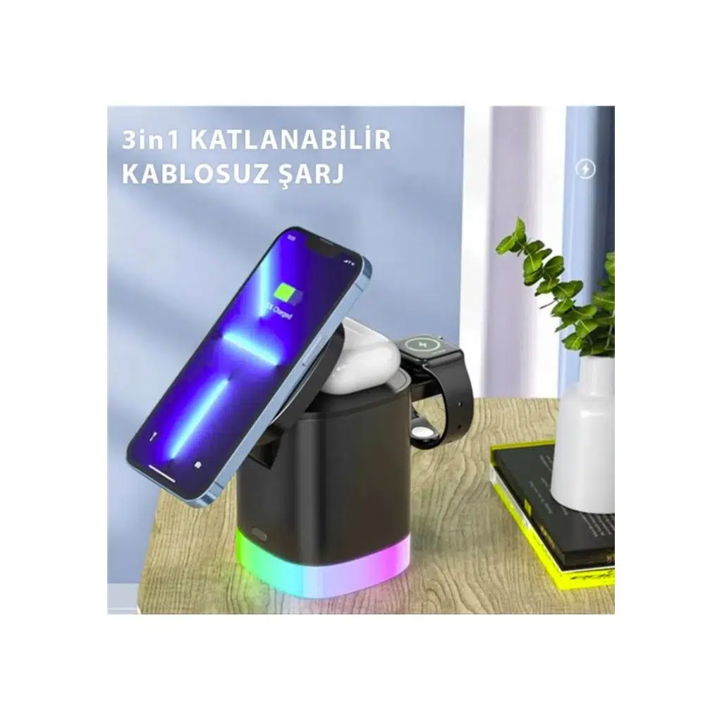 3'ü 1 arada kablosuz şarj cihazı x1