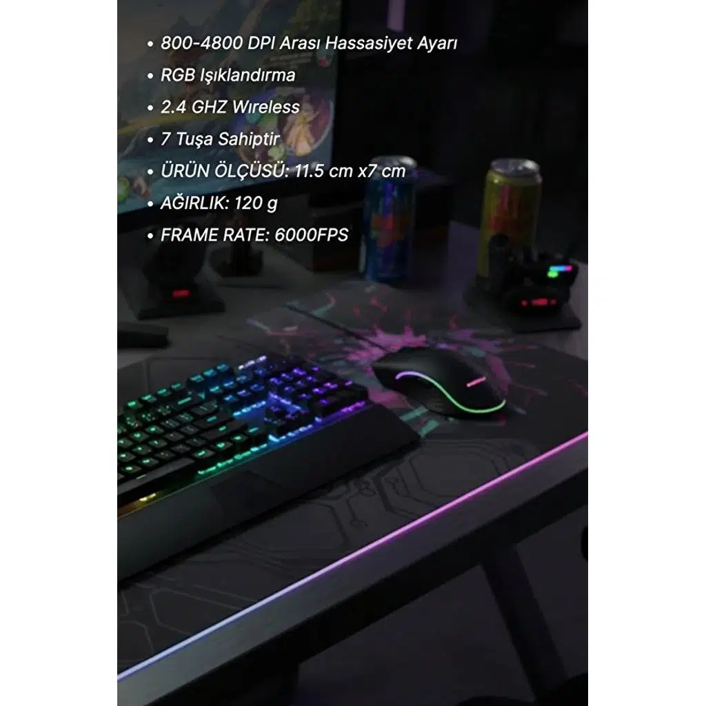 Gaming RGB Işıklı Şarjlı 4800 DPI Kablosuz Mouse