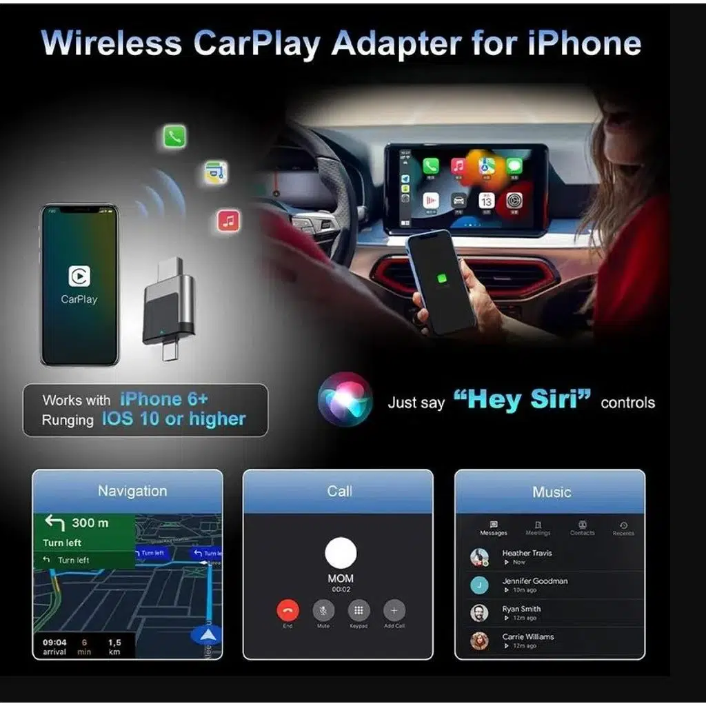 Yüksek performansı, evrensel uyumluluğu ve şık tasarımı tek bir kompakt adaptörde birleştiriyor. Kablosuz özgürlük, otomatik bağlantı kolaylığı ve aracınızın orijinal araç içi özelliklerinin tamamına tam destek ile günlük sürüşünüzü kolaylaştırıyor.
