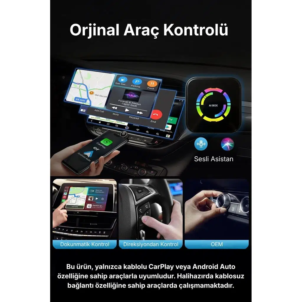 Yanlızca kablolu CARPLAY/ANDROİD AUTO olan araçlarda çalışmaktadır.Kablosuz bağlantı özelliği olan araçlarda çalışmayacaktır
