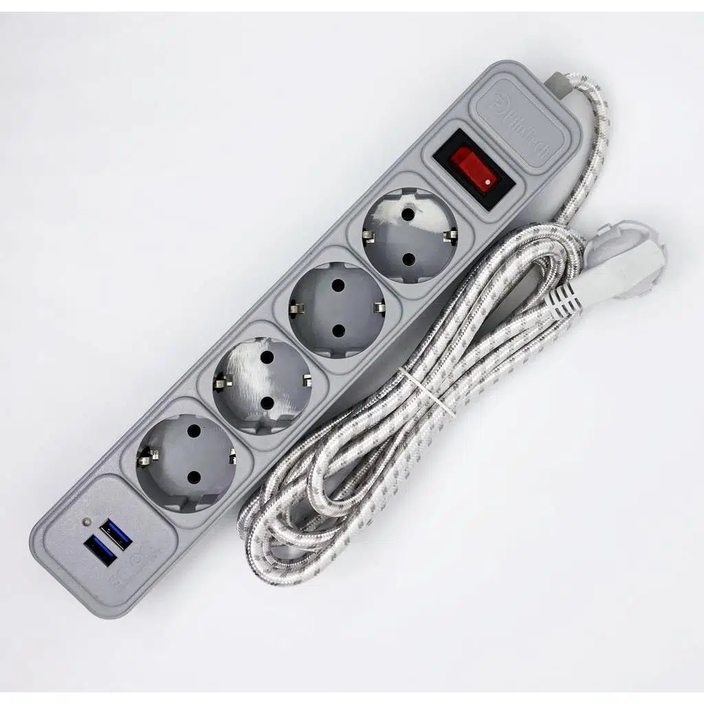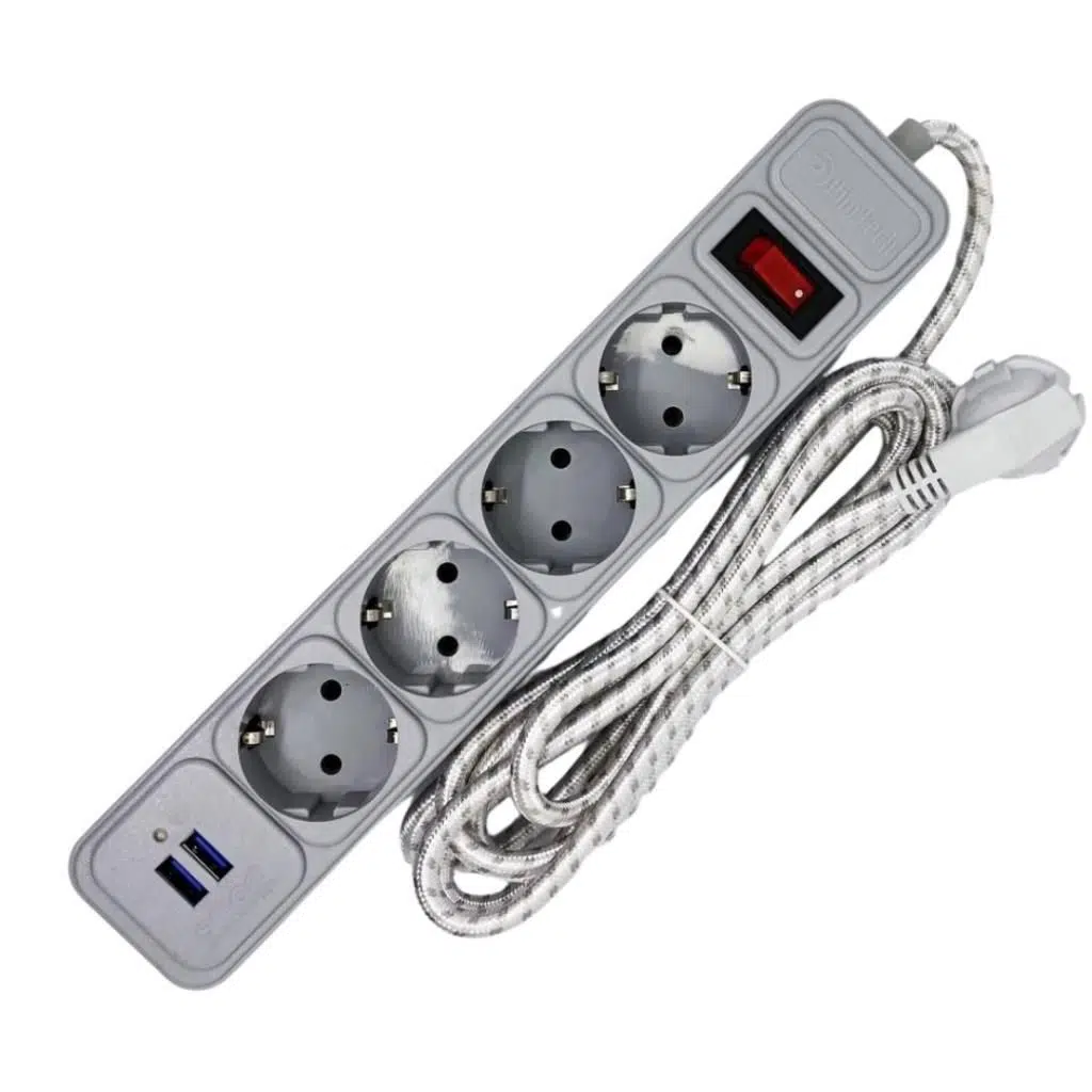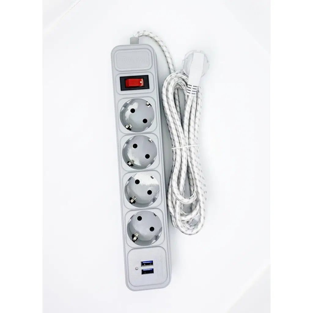 Techmaster 2 Usbli Akım Çocuk Korumalı 4lü Priz 2mt Gri