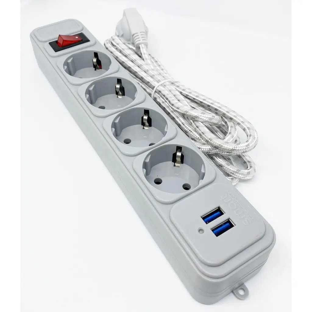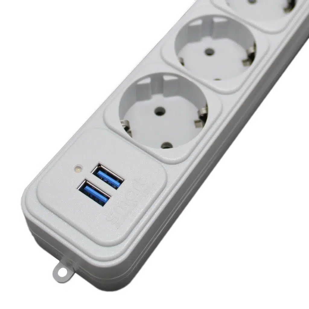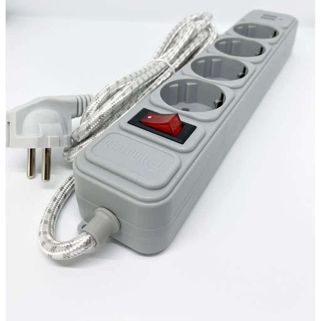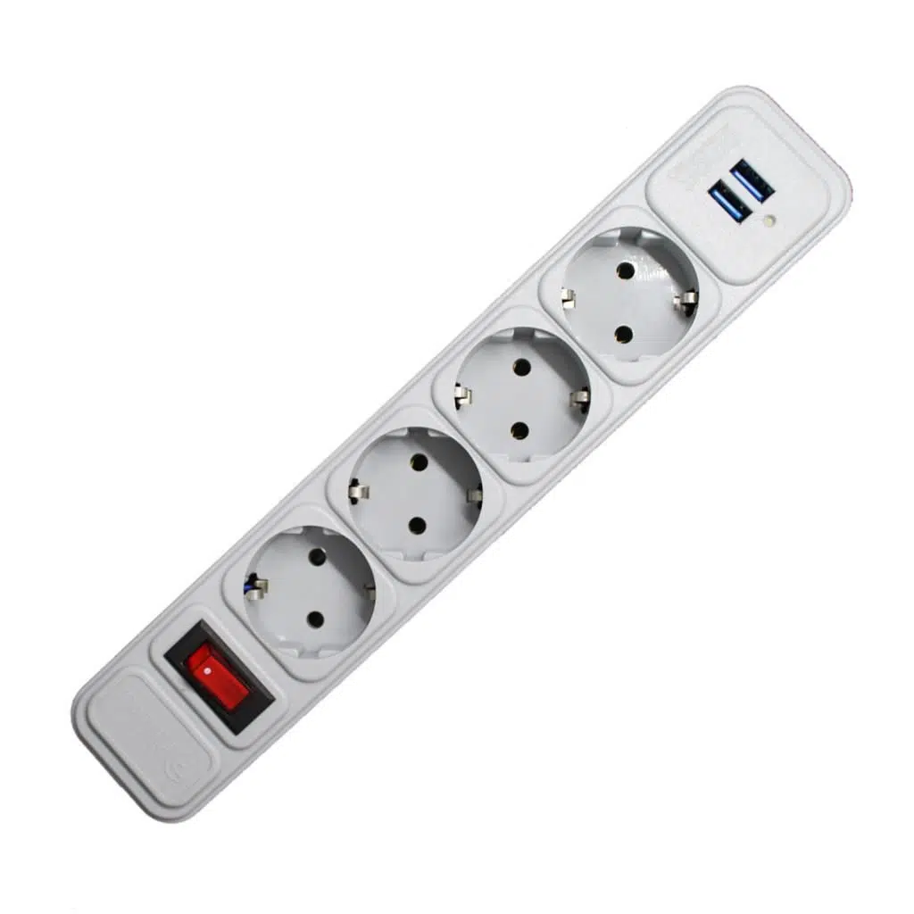 Techmaster 2 Usbli Akım Çocuk Korumalı 4lü Priz 2mt Gri