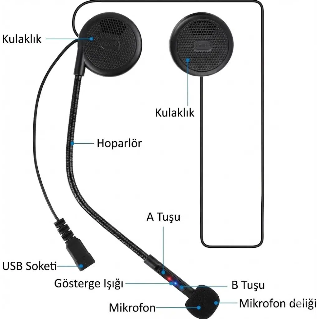 Techmaster L1M-S Bluetooth İntercom Motosiklet Kaskı Kulaklık